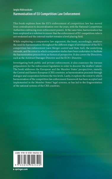 While employing a comparative law argument, the book, accordingly, analyses the need for harmonisation throughout the different stages of development of the EU's competition law enforcement (save Merger control and State Aid), the underlying rationale, and the extent to which comparative studies have been undertaken to facilitate the harmonisation process from an historical perspective. It also covers the Directives, such as the Antitrust Damages Directive and the ECN+ Directive.