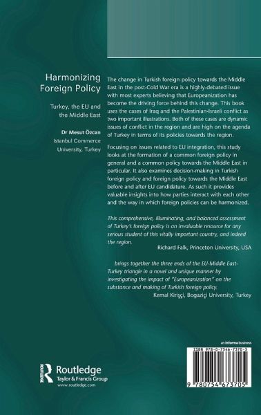 The change in Turkish foreign policy towards the Middle East in the post-Cold War era is a highly debated issue, with most experts believing that Europeanization has become the driving force behind this change. This book takes the cases of Iraq and the Palestinian-Israeli conflict as two important illustrations. Both cases present dynamic issues of conflict in the region and are high on Turkey's agenda in terms of its policies towards the region. Focusing on issues related to EU integration, the study examines the formation of a common foreign policy in general and a common policy towards the Middle East in particular. It also investigates decision making in Turkish foreign policy and foreign policy towards the Middle East before and after EU candidature. As such it provides valuable insights into how parties interact with each other and the way in which foreign policies can be harmonized.