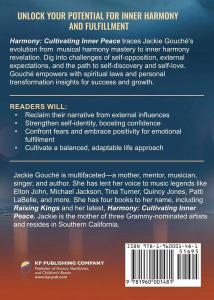 Harmony: Cultivating Inner Peace explores the author's journey toward discovering inner harmony. Drawing inspiration from the ageless wisdom of Stephen Covey's philosophy that "there are three constants in life: change, choice, and principles," the author shares the concept of harmony beyond its musical connotations. Jackie Gouché, a seasoned master of musical harmony, candidly shares her transformational voyage from orchestrating music to the profound realization that inner peace is equally, if not more, essential. With honesty and vulnerability, they unveil a life lived in disharmony, torn between societal expectations and their authentic self. The author invites readers to look at their inner conflicts and dilemmas, echoing the universal struggle of conforming to external pressures versus aligning with one's true desires. The author guides readers toward self-discovery, self-care, and self-love through personal anecdotes and hard-earned wisdom. The book emphasizes the power of Spiritual Laws, universal truths governing our existence, likening them to road signs in life. Drawing from personal experience, the author underscores the transformational impact of understanding and adhering to these laws, akin to confidently navigating life's roads. Harmony is a heartfelt narrative enriched with practical insights and principles, offering a roadmap for readers to achieve inner peace and alignment. It serves as a beacon of hope, encouraging readers to embark on their journey toward harmony long before their "golden years" arrive. Ultimately, this book is a poignant reminder that inner peace and harmony are attainable, irrespective of one's life stage or past experiences.