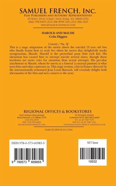 This is a stage adaptation of the movie about the suicidal 19 year old boy who finally learns how to truly live when he meets that delightfully wacky octogenarian Maude. Harold is the proverbial poor little rich kid. His alienation has caused him to attempt suicide several times though these incidents are more cries for attention than actual attempts. His peculiar attachment to Maude whom he meets at a funeral (a mutual passion) is what saves him and what captivates us. This stage version a hit in France directed by the internationally renowned Jean Louis Barrault will certainly delight both aficionados of the film and new comers to the story.