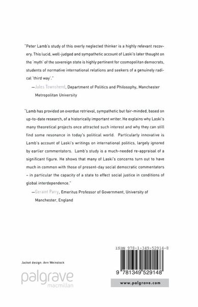 "Lamb has provided an overdue retrieval, sympathetic but fair-minded, based on up-to-date research, of a historically important writer. He explains why Laski's many theoretical projects once attracted such interest and why they can still find some resonance in today's political world. Particularly innovative is Lamb's account of Laski's writings on international politics, largely ignored by earlier commentators. Lamb's study is a much-needed re-appraisal of a significant figure. He shows that many of Laski's concerns turn out to have much in common with those of present-day social democratic commentators - in particular the capacity of a state to effect social justice in conditions of global interdependence."