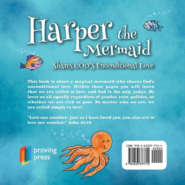 This book is about a magical mermaid who shares God's unconditional love. Within these pages you will learn that we are called to love, and God is the only judge. He loves us all equally regardless of gender, race, politics, or whether we are rich or poor. No matter who we are, we are called simply to love!"Love one another: just as I have loved you, you also are to love one another." John 13:34