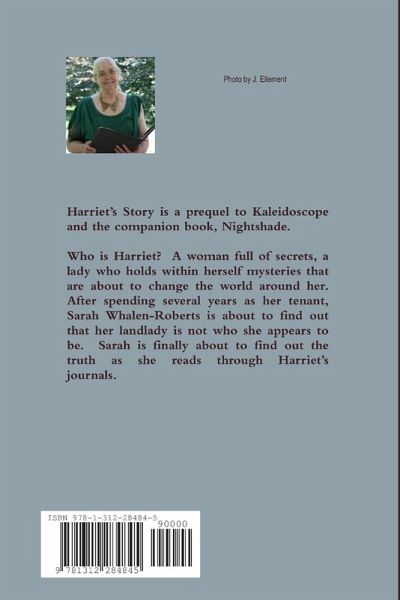 Harriet's Story is a prequel to Kaleidoscope and the companion book, Nightshade. Who is Harriet? A woman full of secrets, a lady who holds within herself mysteries that are about to change the world around her. After spending several years as her tenant, Sarah Whalen-Roberts is about to find out that her landlady is not who she appears to be. Sarah is finally about to find out the truth as she reads through Harriet's journals.