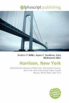 Please note that the content of this book primarily consists of articles available from Wikipedia or other free sources online. Harrison is a coterminus town/village in Westchester County, New York, United States. The population was 24,154 at the 2000 census and estimated at 26,665 today. The municipality has a consolidated town/village government. According to the United States Census Bureau, the village has a total area of 17.4 square miles (45.0 km2), of which, 16.8 square miles (43.6 km2) of it is land and 0.6 square miles (1.5 km2) of it (3.22%) is water. The distance from Harrison Station to Grand Central Station in Midtown Manhattan is about 27 miles. Harrison is bordered by White Plains, Rye town, Rye city and Mamaroneck. The New England Thruway (I-95) runs through the town (without any interchanges) as well as the Cross Westchester Expressway (I-287) and the Hutchinson River Parkway. In addition, I-684 passes through Harrison and ends at the Cross Westchester Expressway and the Hutchinson River Parkway.