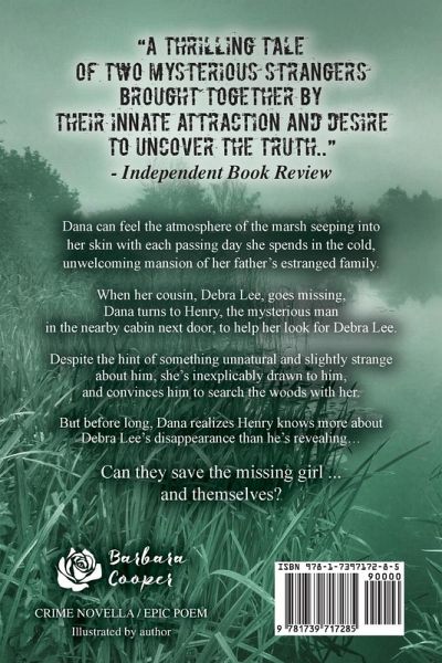 ¿¿¿¿¿ Poetic Suspense Thriller ¿¿¿¿ Alluringly mysterious and thrilling Can she save the missing girl ... and herself? Dana Fairchild feels the atmosphere of the marsh seeping into her skin with each day she spends in the cold unwelcoming mansion of her father's family. When her young cousin, Debra Lee, mysteriously vanishes, Dana turns to Henry - a neighbor from a cabin nearby, to help search for her. Is her cousin dead? What are these strange visions and dreams her new friend is having ... could they be connected to the missing girl? Despite the hint of something unnatural and slightly strange about this, Dana is inexplicably drawn to the surrounding woods and to the neighbor himself. But does Henry know more about Debra Lee's disappearance than he's revealing... and is it up to our heroine to start being afraid? Vintage line ink Illustrations by author. Harrowing Roses is a poetic psychological thriller novella. If you like supernatural mysteries, haunting romance, and evocative vintage-inked illustrations, then you'll love Barbara Cooper's twisted connection. Buy Harrowing Roses to wake up in the eerie wetlands today!