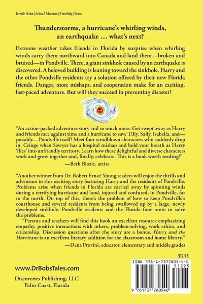 Thunderstorms, a hurricane's whirling winds, an earthquake ... what's next? Extreme weather takes friends in Florida by surprise when whirling winds carry them northward into Canada and land them-broken and bruised-in Pondville. There, a giant sinkhole caused by an earthquake is discovered. A beloved building is leaning toward the sinkhole. Harry and the other Pondville residents try a solution offered by their new Florida friends. Danger, more mishaps, and cooperation make for an exciting, fast-paced adventure. But will they succeed in preventing disaster?