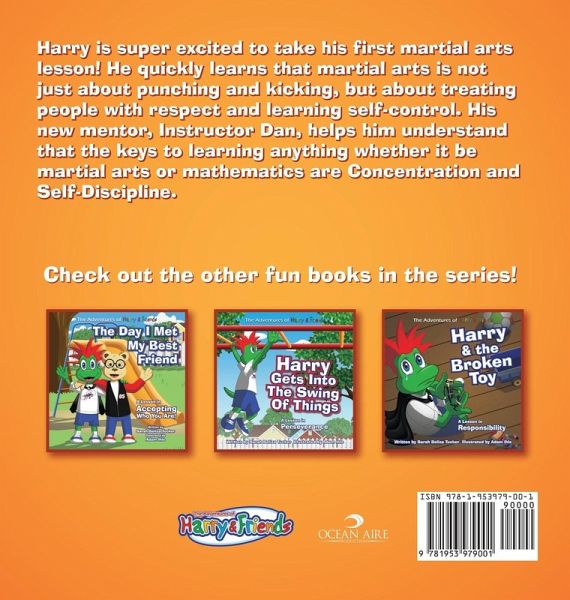 Harry is super excited to take his first martial arts lesson! He quickly learns that martial arts is not just about punching and kicking, but about treating people with respect and learning self-control. His new mentor, Instructor Dan, helps him understand that the keys to learning anything whether it be martial arts or mathematic are Concentration and Self-Discipline. The Adventures of Harry & Friends¿ is a new series of children's books, grown from the award winning, 'Harry & Friends Black Belt Principles Character Education Program.' Martial arts schools from around the world have been applying and teaching these life skills to their youngest students from the ages of 3 to 8 years old, Since 1999. Martial Arts Schools are famous for helping children develop confidence, discipline, respect and many other valuable life skills. Through this incredible book series you can access the same resources used by martial arts schools worldwide to teach character education to your child at home. ¿ Our Mission ¿ Helping Young Minds Grow Stronger Be the first to know of new book releases at www.adventuresofharryandfriends.com and join the club! ¿¿¿¿¿ Parent's Are Raving ¿¿¿¿¿ "As a Student, I have had the great pleasure in witnessing Harry the Lizard grow into a colorful and lively character who has long earned his place in the hearts of families who want to instill in their children the greatest principles in life. I vividly remember being a young kid, watching Sarah complete the first sketches of Harry. Over the years, he gained friends, storylines, and animation. To hold these books in my hands, I know I hold decades of work, inspiration, and education. Harry is not only a fun character to read; he pulls his readers into his story and makes them deliberate and consider along the way. Harry and his friends are not interested in just entertainment; they are here to educate and help children become good people. As a teacher, I truly believe there is no greater lesson than character development. To know that other children will hear those empowering and significant words fills me with hope and pride. As a Mom, the most wonderful part of holding Harry's books is getting to share him with my three-year old daughter. I read to her all three of Harry's current books, and she sat and listened intently without loosing attention, a rarity with longer books. More than that, she later recalled certain parts of Harry's story and mentioned them to me, like the monkey bars or the martial arts itself. More importantly, she will learn the significant lessons I gained from my own Martial Arts Training: perseverance, discipline, respect, and so much more. Now I do not have to wait to share this education with her. Harry and his friends get to start that conversation in my household right now. "...Jacklyn Gion - Administrator- Masters in Literature (Creative Writing) Stetson University From the Author The Adventures of Harry and Friends¿ goal is to help young minds grow stronger and empower them through stories that will: ¿ Inspire their imagination ¿ Develop their moral compass ¿ Set positive examples both visually and verbally ¿ Prepare them for life's challenges ¿ Thank you for purchasing this book, We would be grateful if you took a minute to leave a review. ¿