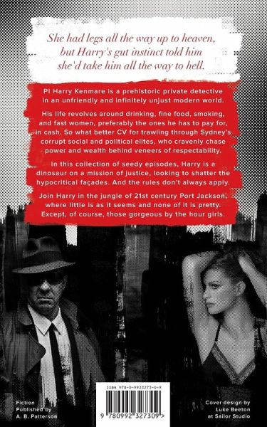 PI Harry Kenmare is a prehistoric private detective in an unfriendly and infinitely unjust modern world. His life revolves around drinking, fine food, smoking, and fast women, preferably the ones he has to pay for, in cash. So what better CV for trawling through Sydney's corrupt social and political elites, who cravenly chase power and wealth behind veneers of respectability. In this collection of seedy episodes, Harry is a dinosaur on a mission of justice, looking to shatter the hypocritical façades. And the rules don't always apply. Join Harry in the jungle of 21st century Port Jackson, where little is as it seems and none of it is pretty. Except, of course, those gorgeous by the hour girls.