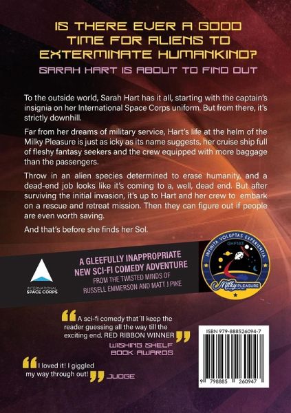 Is there ever a good time for aliens to exterminate humankind? Sarah Hart is about to find out... To the outside world, Sarah Hart has it all, starting with the captain's insignia on her International Space Corps uniform. But from there, it's strictly downhill. Far from her dreams of military service, Hart's life at the helm of the Milky Pleasure is just as icky as its name suggests, her cruise ship full of fleshy fantasy seekers and the crew equipped with more baggage than the passengers. Throw in an alien species determined to erase humanity, and a dead-end job looks like it's coming to a, well, dead end. But after surviving the initial invasion, it's up to Hart and her crew to embark on a rescue and retreat mission. Then they can figure out if people are even worth saving. And that's before she finds her Sol. A gleefully inappropriate new sci-fi comedy adventure from the twisted minds of Russell Emmerson and Matt J Pike.