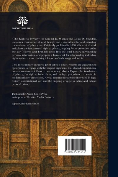"The Right to Privacy," by Samuel D. Warren and Louis D. Brandeis, remains a cornerstone of legal thought and a crucial text for understanding the evolution of privacy law. Originally published in 1890, this seminal work articulates the fundamental right to privacy, arguing for its protection under the law. Warren and Brandeis delve into the legal history surrounding personal information and propose a framework for safeguarding individual rights against the encroaching influences of technology and media. This meticulously prepared print edition offers readers an unparalleled opportunity to engage with the original arguments that shaped constitutional law and continue to influence contemporary debates. Explore the foundations of privacy, the right to be let alone, and the legal precedents that underpin modern privacy protections. A vital resource for anyone interested in legal history, constitutional law, and the ongoing struggle to define and defend personal privacy. This work has been selected by scholars as being culturally important, and is part of the knowledge base of civilization as we know it. This work is in the public domain in the United States of America, and possibly other nations. Within the United States, you may freely copy and distribute this work, as no entity (individual or corporate) has a copyright on the body of the work. Scholars believe, and we concur, that this work is important enough to be preserved, reproduced, and made generally available to the public. We appreciate your support of the preservation process, and thank you for being an important part of keeping this knowledge alive and relevant.