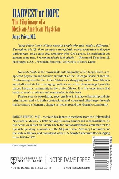 Harvest of Hope is the remarkable autobiography of Dr. Jorge Prieto, a respected physician and former president of the Chicago Board of Health. Prieto immigrated to the United States as a struggling intern from Mexico and dedicated his life to bringing medical care to the disadvantaged and displaced Hispanic community in the United States. It is this experience that lends so much credence and compassion to this book. Prieto's story is one of faith, hope, and love in the face of hardship and discrimination; and it is both a professional and a personal pilgrimage through half a century of dynamic change in medicine and the Hispanic community.