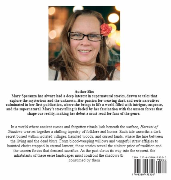 In a world where ancient curses and forgotten rituals lurk beneath the surface, Harvest of Shadows weaves together a chilling tapestry of folklore and horror. Each tale unearths a dark secret buried within isolated villages, haunted woods, and cursed lands, where the line between the living and the dead blurs. From blood-weeping willows and vengeful straw effigies to haunted choirs trapped in eternal lament, these stories reveal the sinister price of tradition and the unseen forces that demand sacrifice. As the past claws its way into the present, the inhabitants of these eerie landscapes must confront the shadows they've sown-or be consumed by them.Vividly atmospheric and unsettlingly poignant, Harvest of Shadows invites you to explore a world where every whispering tree, every crumbling church, and every glowing lantern holds a story that will haunt your soul. Step into the forgotten corners of rural horror, where the harvest is ripe, but what it yields is far more than anyone bargained for. Perfect for fans of folk horror, dark fables, and tales that linger long after the last page, this collection delves into the timeless fear of what lies just beyond the light.Will you brave the shadows, or will they harvest you?