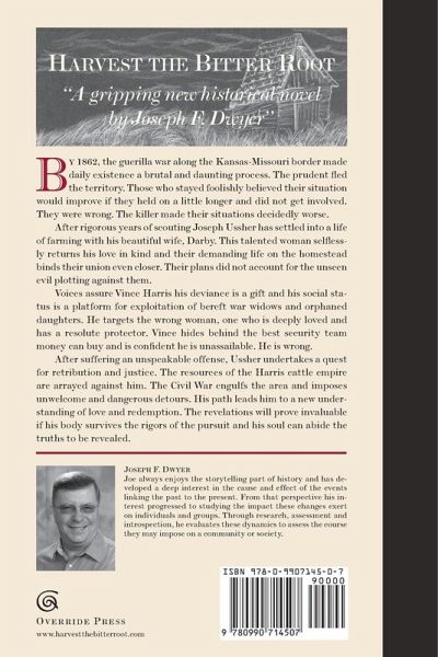 By 1862, the guerilla war along the Kansas-Missouri border made daily existence a brutal and daunting process. The prudent fled the territory. Those who stayed foolishly believed their situation would improve if they held on a little longer and did not get involved. They were wrong. The killer made their situations decidedly worse. After rigorous years of scouting Joseph Ussher has settled into a life of farming with his beautiful wife, Darby. This talented woman selflessly returns his love in kind and their demanding life on the homestead binds their union even closer. Their plans did not account for the unseen evil plotting against them. Voices assure Vince Harris his deviance is a gift and his social status is a platform for exploitation of bereft war widows and orphaned daughters. He targets the wrong woman, one who is deeply loved and has a resolute protector. Vince hides behind the best security team money can buy and is confident he is unassailable. He is wrong. After suffering an unspeakable offense, Ussher undertakes a quest for retribution and justice. The resources of the Harris cattle empire are arrayed against him. The Civil War engulfs the area and imposes unwelcome and dangerous detours. His path leads him to a new understanding of love and redemption. The revelations will prove invaluable if his body survives the rigors of the pursuit and his soul can abide the truths to be revealed.
