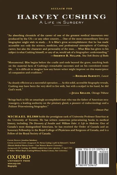 Preface Opening: The Surgeon and the General 1: Western Reserve: The Cushings of Cleveland 2: Making a Yale Man 3: Making a Harvard Doctor 4: Making an American Surgeon 5: A Window on the Brain 6: Opening the Closed Box: The Birth of Neurosurgery 7: The Bottom of the Box: Interrogating the Pituitary 8: Adieu the Simple Life 9: Adieu America: Cushing Goes to War 10: A Head Surgeon at Passchendaele 11: Fathers and Sons 12: Johnson and Boswells: Chief and Harem 13: Sprinting to the Tape 14: Regius Professor at Yale Closing: Inheritance and Memory