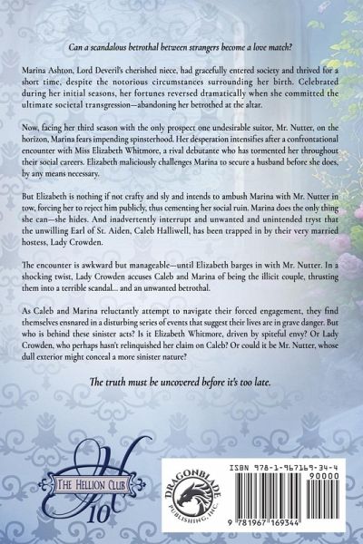 Can a scandalous betrothal between strangers become a love match? Marina Ashton, Lord Deveril's cherished niece, had gracefully entered society and thrived for a short time, despite the notorious circumstances surrounding her birth. Celebrated during her initial seasons, her fortunes reversed dramatically when she committed the ultimate societal transgression-abandoning her betrothed at the altar. Now, facing her third season with the only prospect one undesirable suitor, Mr. Nutter, on the horizon, Marina fears impending spinsterhood. Her desperation intensifies after a confrontational encounter with Miss Elizabeth Whitmore, a rival debutante who has tormented her throughout their social careers. Elizabeth maliciously challenges Marina to secure a husband before she does, by any means necessary. But Elizabeth is nothing if not crafty and sly and intends to ambush Marina with Mr. Nutter in tow, forcing her to reject him publicly, thus cementing her social ruin. Marina does the only thing she can-she hides. And inadvertently interrupt and unwanted and unintended tryst that the unwilling Earl of St. Aiden, Caleb Halliwell, has been trapped in by their very married hostess, Lady Crowden. The encounter is awkward but manageable-until Elizabeth barges in with Mr. Nutter. In a shocking twist, Lady Crowden accuses Caleb and Marina of being the illicit couple, thrusting them into a terrible scandal... and an unwanted betrothal. As Caleb and Marina reluctantly attempt to navigate their forced engagement, they find themselves ensnared in a disturbing series of events that suggest their lives are in grave danger. But who is behind these sinister acts? Is it Elizabeth Whitmore, driven by spiteful envy? Or Lady Crowden, who perhaps hasn't relinquished her claim on Caleb? Or could it be Mr. Nutter, whose dull exterior might conceal a more sinister nature? The truth must be uncovered before it's too late.