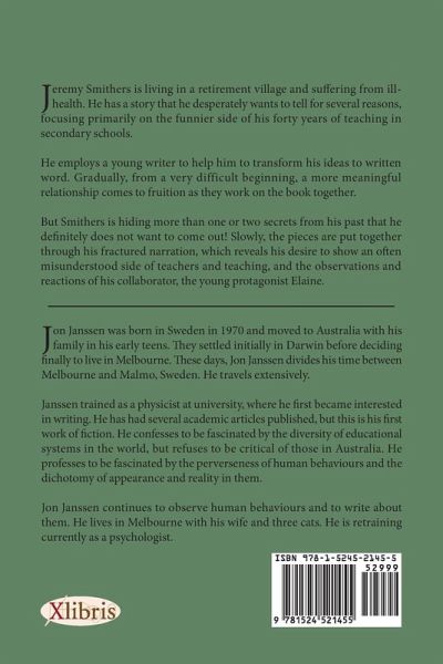 Jeremy Smithers is living in a retirement village and suffering from ill-health. He has a story that he desperately wants to tell for several reasons, focusing primarily on the funnier side of his forty years of teaching in secondary schools. He employs a young writer to help him to transform his ideas to written word. Gradually, from a very difficult beginning, a more meaningful relationship comes to fruition as they work on the book together. But Smithers is hiding more than one or two secrets from his past that he definitely does not want to come out! Slowly, the pieces are put together through his fractured narration, which reveals his desire to show an often misunderstood side of teachers and teaching, and the observations and reactions of his collaborator, the young protagonist Elaine.