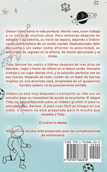 Gideon Ellery tenía la vida perfecta. Bonita casa, buen trabajo y un novio de muchos años. Pero semanas después de adoptar a su sobrino, su novio se separa, dejando a Gideon como padre soltero de un recién nacido. Desilusionado, falto de sueño y sin saber cómo afrontar la paternidad, es solicitado de regreso en la oficina. Se siente abrumado y al límite.¿ Toby Barlow ha vuelto a Sídney después de tres años de estudiar, viajar y hacer de niñero en el Reino Unido. Necesita trabajo y un lugar donde vivir, y la solución perfecta cae en sus manos. Después de todo, cuidar de un bebé de tiernas mejillas en una preciosa casa, propiedad de un guapísimo hombre soltero, no es precisamente terrible.¿ Gideon no está muy dispuesto a compartir su vida con un extraño, pero su necesidad de ayuda es acuciante. El alegre Toby no está preparado para un Gideon gruñón ni para su adorable hijo, Benson. O para cuan fácil se integra en sus vidas. Y Gideon no está preparado para lo mucho que necesita a Toby.¿ O cuánto lo desea.¿ Ninguno de los dos está preparado para las complicaciones de enamorarse.