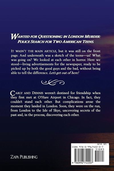 Carly and Dennis weren’t destined for friendship when they first met at O’Hare Airport in Chicago. In fact, they couldn’t stand each other. But complications arose the moment they landed in London. Soon, they were on the run, from London to the Isle of Skye, uncovering secrets of the past and, in the process, discovering each other.
