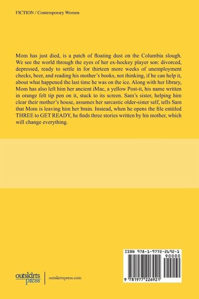 Mom has just died, is a patch of floating dust on the Columbia slough. We see the world through the eyes of her ex-hockey player son: divorced, depressed, ready to settle in for thirteen more weeks of unemployment checks, beer, and reading his mother's books, not thinking, if he can help it, about what happened the last time he was on the ice. Along with her library, Mom has also left him her ancient iMac, a yellow Post-it, his name written in orange felt tip pen on it, stuck to its screen. Sam's sister, helping him clear their mother's house, assumes her sarcastic older-sister self, tells Sam that Mom is leaving him her brain. Instead, when he opens the file entitled THREE to GET READY, he finds three stories written by his mother, which will change everything.