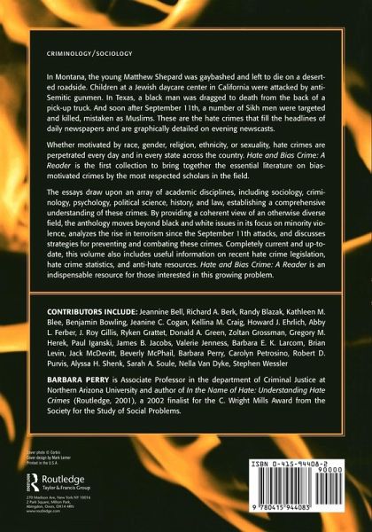 Barbara Perry is Associate Professor in the department of Criminal Justice at Northern Arizona University. She is the author of In The Name of Hate: Understanding HateCrimes (Routledge, 2001), which was a finalist for the 2001 C. Wright Mills Award.
