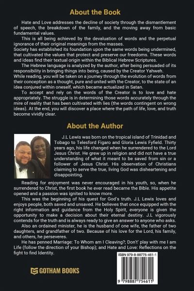 Hate and Love addresses the decline of society through the dismantlement of speech, the breakdown of the family, and moving away from basic fundamental values. This is all being achieved by the devaluation of words and the perpetual ignorance of their original meanings from the masses. Society has established its foundation upon the same words being undermined, that cultivated the values that protect and preserve our freedoms. These words and ideas find their textual origin within the Biblical Hebrew Scriptures. The Hebrew language is analyzed by the author, after being persuaded of its responsibility in bringing things into being, caused by the Creator Yahweh. While reading, you will be taken on a journey through the evolution of words from their conception as a thought, pure and united with the Creator, to the state of an idea conjured within oneself, which became actualized in Satan. To accept and rely on the words of the Creator is to love and hate appropriately. The struggle is in determining those words accurately through the mire of reality that has been cultivated with lies (the words contingent on wrong ideas). At the end, you will discover a place where the path of life, love, and truth becomes vividly clear.