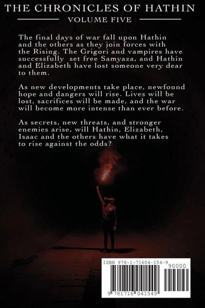 The final days of war fall upon Hathin and the others as they join forces with the Rising. The Grigori and vampires have successfully set free Samyaza, and Hathin and Elizabeth have lost someone very dear to them. As new developments take place, newfound hope and dangers will rise. Lives will be lost, sacrifices will be made, and the war will become more intense than ever before. As secrets, new threats, and stronger enemies arise, will Hathin, Elizabeth, Isaac and the others have what it takes to rise against the odds?