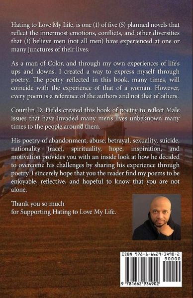 Hating to Love My Life, is one (1) of five (5) planned novels that reflect the innermost emotions, conflicts, and other diversities that (I) believe men (not all men) have experienced at one or many junctures of their lives.As a man of Color, and through my own experiences of life's ups and downs. I created a way to express myself through poetry. The poetry reflected in this book, many times, will coincide with the experience of that of a woman. However, every poem is a reference of the authors and not that of others.Courtlin D. Fields created this book of poetry to reflect Male issues that have invaded many men's lives unbeknown many times to the people around them.His poetry of abandonment, abuse, betrayal, sexuality, suicide, nationality (race), spirituality, hope, inspiration, and motivation provides you with an inside look at how he decided to overcome his challenges by sharing his experience through poetry. I sincerely hope you as the reader find my poems to be enjoyable, reflective, and hopeful to know that you are not alone. Thank you so much for Supporting Hating to Love My Life.
