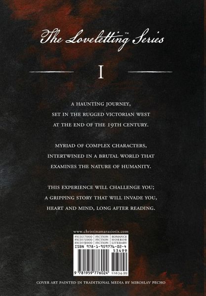 A young woman who learns to become strong in the face of impossible circumstances, and a man who finds light in the midst of overwhelming darkness. Prepare yourself for the first book in a haunting new series...Loveletting.¿ Fleeing from her home after escaping the murder of her mother, inexperienced and petrified by reality with her horse as her only companion - Charlotte is met by the most notorious serial killer of the nation. His dark past and her dark future collide, in a world filled with dangers far greater than him. Set in the rugged Victorian west at the end of the 19th century with a myriad of complex characters, all intertwined in a brutal environment that examines the conflicting nature and morality of humanity. Charlotte may be innocent at heart, but the world she lives in is not. Filled with dangers from gangs to cults and a mysterious horror element that persists throughout - the overarching gothic love story fills this thrilling, dark adventure up until the haunting end...leaving the reader with an existential dread so deep that it must be read to be understood, yet craving for more. This novel is definitely for an adult audience, as the content is very heavy and challenging. It will appeal to those interested in a gothic romance with undertones of psychological horror. Most importantly, this book is a form of literary fiction; as character development is the most crucial factor in telling this story and it does NOT follow the typical tropes of a genre book. Subtle hints to the dark machinations behind the scenes, and interweaving characters who gradually change and grow over time, all work together to create a living world - filled with the unexpected - in which to lose yourself within. If you want something to read on autopilot, and wish for the plot to follow a certain expected pattern, this is NOT the book for you. This experience will challenge you; a gripping story that will invade you, heart and mind, long after reading.
