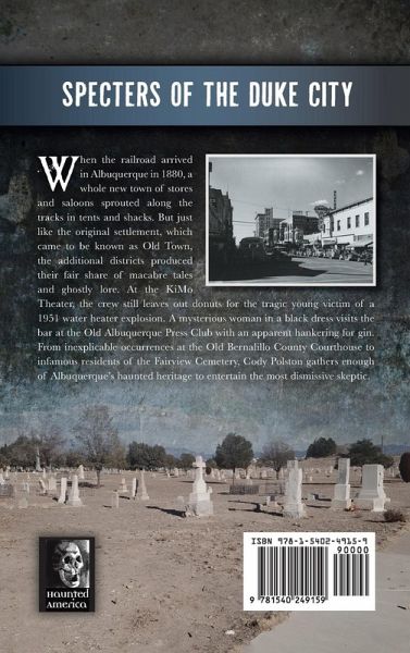 When the railroad arrived in Albuquerque in 1880, a whole new town of stores and saloons sprouted along the tracks in tents and shacks. But just like the original settlement, which came to be known as Old Town, the additional districts produced their fair share of macabre tales and ghostly lore. At the KiMo Theater, the crew still leaves out donuts for the tragic young victim of a 1951 water heater explosion. A mysterious woman in a black dress visits the bar at the Old Albuquerque Press Club with an apparent hankering for gin. From inexplicable occurrences at the Old Bernalillo County Courthouse to infamous residents of the Fairview Cemetery, Cody Polston gathers enough of Albuquerque's haunted heritage to entertain the most dismissive skeptic.