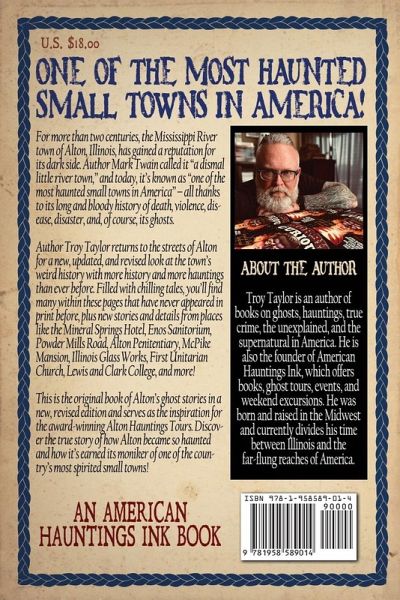 HAUNTED ALTON THE HISTORY AND MYSTERY OF ONE OF THE MOST HAUNTED SMALL TOWNS IN AMERICA BY TROY TAYLOR For more than two centuries, the Mississippi River town of Alton, Illinois, has gained a reputation for its dark side. Author Mark Twain called it "a dismal little river town," and today, it's known as "one of the most haunted small towns in America" - all thanks to its long and bloody history of death, violence, disease, disaster, and, of course, its ghosts. Author Troy Taylor returns to the streets of Alton for a new, updated, and revised look at the town's weird history with more history and more hauntings than ever before. Filled with chilling tales, you'll find many within these pages that have never appeared in print before, plus new stories and details from places like the Mineral Springs Hotel, Enos Sanitorium, Powder Mills Road, Alton Penitentiary, McPike Mansion, Illinois Glass Works, First Unitarian Church, Lewis and Clark College, and more! This is the original book of Alton's ghost stories in a new, revised edition and serves as the inspiration for the award-winning Alton Hauntings Tours. Discover the true story of how Alton became so haunted and how it's earned its moniker of one of the country's most spirited small towns!