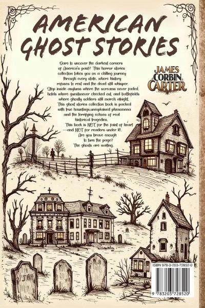 Dare to uncover the darkest corners of America's past? This horror stories collection takes you on a chilling journey through every state, where history refuses to rest and the dead still whisper. Step inside asylums where the screams never faded, hotels where guests never checked out, and battlefields where ghostly soldiers still march at night. This ghost stories collection book is packed with true hauntings,unexplained phenomena, and the terrifying echoes of real historical tragedies. Inside These Pages, You'll Discover: From famous haunted locations to hidden horrors buried in small towns, every state has 1-3 terrifying tales, with some quick chills and others deep, immersive nightmares. Where possible, real pictures of these haunted sites are included-alongside eerie illustrations created by the author to bring the fear to life. This book is NOT for the faint of heart-and NOT for readers under 18. Are you brave enough to turn the page? The ghosts are waiting.