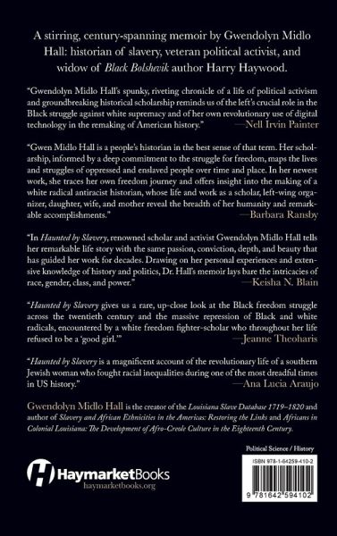 The memoir of Gwendolyn Midlo Hall offers today's activists and readers an accessible and intimate examination of a crucial era in American radical history. Born in 1929 New Orleans to left-wing Jewish parents, Gwendolyn Midlo Hall's life has spanned nearly a century of engagement in anti-racist, internationalist political activism. In this moving and instructive chronicle of her remarkable life, Midlo Hall recounts her experiences as an anti-racist activist, a Communist Party militant, and a scholar of slavery in the Americas, as well as the wife and collaborator of the renowned African-American author and Communist leader Harry Haywood. Telling the story of her life against the backdrop of the important political and social developments of the 20th century, Midlo Hall offers new insights about a critical period in the history of labor and civil rights movements in the United States. Detailing everything from Midlo Hall's co-founding of the only inter-racial youth organization in the South when she was 16-years-old, to her pioneering work establishing digital slave databases, to her own struggles against cruel and pervasive sexism, Haunted by Slavery is a gripping account of a life defined by profound dedication to a cause.