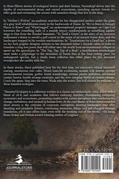 "A startlingly bright collection of sparse and spooky ecological horror stories" -Library JournalIn these fifteen stories of ecological horror and dark fantasy, Farrenkopf delves into the depths of environmental decay and cursed ecosystems, searching ancient forests for elder gods and swimming the oceans with nameless things that live in the deep.In "Mother's Wolves" an academic searches for her disappeared mother under the guise of a gray wolf rehabilitation study in the backwoods of Maine. In "We've Been in Enough Places to Know" and "Waterlogged," an underemployed property manager on Cape Cod traverses the crumbling halls of a seaside luxury condominium as something aquatic sings to him from the flooded basement. "To Tend a Grove" is the story of an eccentric millionaire's desire to rewild a golf course in the name of an ancient forest deity and the landscaper trapped in his verdant machinations. In "Translations for a Dead Sea" a down on her luck graphic designer retreats to her deceased father's bayside cabin in order to translate a long-lost poem that will either save the world from environmental collapse or speed up the apocalypse. In "The Tap, Tap, Tap of a Beak" a heartbroken ornithologist must make a pilgrimage to the mountain of bones that is the final resting place for endangered species, but a shady bone collector has other plans for the deceased woodpecker she carries with her.In these stories, three published here for the first time, we encounter ethical werewolf rearing, murderous tree cults, Weird insectile evolutions, seaside folk horror, corrupt environmental tourism, gothic forest wanderings, eternal plastic pollution, sea-bound cosmic horror, hostile swamp creatures, and the ever creeping threat of climate change. Crack the spine. Step into the trees. Wade into the water. You will always be welcome in these haunted ecologies."Haunted Ecologies is a collection written in a classic and melancholic voice, filled with a blend of cli-fi and academia that follows enduring families, illuminating collapsing economics and ecosystems, presenting readers with nature metaphors that symbolize the change, turbulence, and turmoil in human lives. At the core theme of these interconnected short stories is the criticism of corporate corruption, wasting landscapes that offer daunting and prophetic futures, continuing memories, things lost and changed through translation, yet it also offers hope, even with the looming end of the world." -Ai Jiang, Bram Stoker and Nebula award-winning author of Linghun