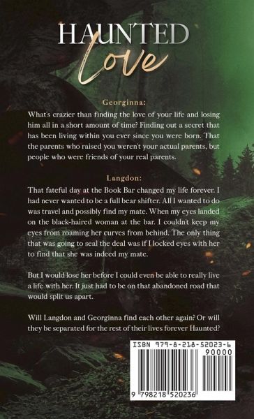 Georginna: What's crazier than finding the love of your life and losing him all in a instant? Finding out a secret that has been living within you ever since you were born. That the parents who raised you weren't your actual parents but people who were friends of them. Langdon: That fateful day at the Book Bar changed my life forever. I never wanted to be a full bear shifter. All I wanted to do was travel and possibly find my mate. When my eyes landed on the black-haired woman at the bar, I couldn't keep my eyes from roaming her curves from behind. The only thing that would seal the deal was if I locked eyes with her to find that she was indeed my mate. But I would lose her before I could even be able to really live our lives together. It just had to be on that abandoned road that would split us apart. Will Langdon and Georginna find each other again? Or will they be separated for the rest of their lives, forever Haunted?