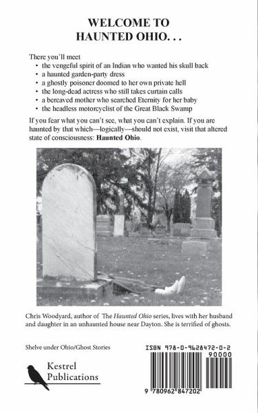 A chilling collection of over 125 tales from around the Buckeye state, Haunted Ohio is the first of Chris Woodyard's collection of Ohio ghost stories. Most stories in this collection have never before been published. There are tales as old as Native American ghostlore; as new as the one about a haunted airplane. There are stories about haunted presidents and haunted swimming pools. There are tales of the dead and famous and of the faceless dead. Ghosts of all kinds flit, shriek, and move furniture throughout these terrifying pages. Visit that altered state of consciousness: Haunted Ohio. Stories from the following Ohio counties: Ashland, Auglaize, Butler, Champaign, Clark, Clermont, Columbiana, Coshocton, Crawford, Cuyahoga, Defiance, Erie, Fairfield, Franklin, Greene, Guernsey, Hamilton, Hardin, Knox, Lawrence, Licking, Mahoning, Marion, Medina, Meigs, Miami, Montgomery, Morgan, Morrow, Muskingum, Noble, Perry, Portage, Richland, Sandusky, Summit, Tuscarawas, Vinton, Wood, Wyandot.
