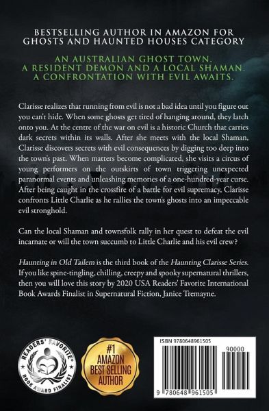 An Australian ghost town. A resident demon. Will Old Tailem town succumb to Little Charlie and his evil crew? Clarisse realizes that running from evil is not a bad idea until she figures out you can't hide. When some ghosts get tired of hanging around, they latch onto you. At the center of the war on evil is a historic Church that carries dark secrets within its walls. After she meets with the local Shaman, Clarisse discovers secrets with evil consequences by digging too deep into the town's past. When matters become complicated, she visits a circus of young performers on the outskirts of town, triggering unexpected paranormal events and unleashing memories of a one-hundred-year curse. After being caught in the crossfire of a battle for evil supremacy, Clarisse confronts Little Charlie as he rallies the town's ghosts into an impeccable evil stronghold. Can the local Shaman and townsfolk rally in her quest to defeat the evil incarnate or will the town succumb to Little Charlie and his evil crew? Haunting in Old Tailem is the third standalone book in the spine-chilling Haunting Clarisse supernatural horror series. If you like pulse-pounding tension, scarily dark corners, and thought-provoking dilemmas, then you'll love Janice Tremayne's unsettling story. Buy Haunting in Old Tailem to outsmart a devil today!