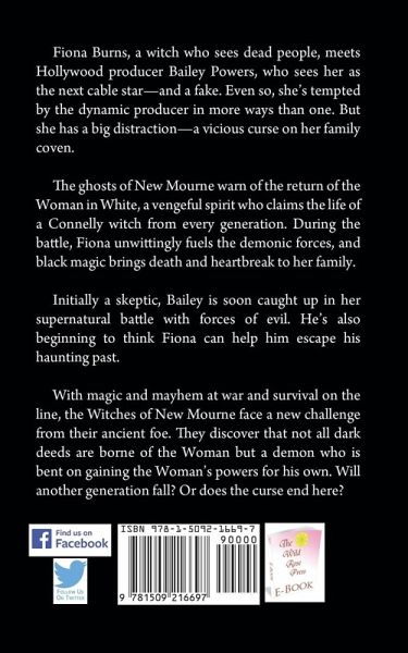 Fiona Burns, a witch who sees dead people, meets Hollywood producer Bailey Powers, who sees her as the next cable star—and a fake. Even so, she’s tempted by the dynamic producer in more ways than one. But she has a big distraction—a vicious curse on her family coven. The ghosts of New Mourne warn of the return of the Woman in White, a vengeful spirit who claims the life of a Connelly witch from every generation. During the battle, Fiona unwittingly fuels the demonic forces, and black magic brings death and heartbreak to her family. Initially a skeptic, Bailey is soon caught up in her supernatural battle with forces of evil. He’s also beginning to think Fiona can help him escape his haunting past. With magic and mayhem at war and survival on the line, the Witches of New Mourne face a new challenge from their ancient foe. They discover that not all dark deeds are borne of the Woman but a demon who is bent on gaining the Woman’s powers for his own. Will another generation fall? Or does the curse end here?