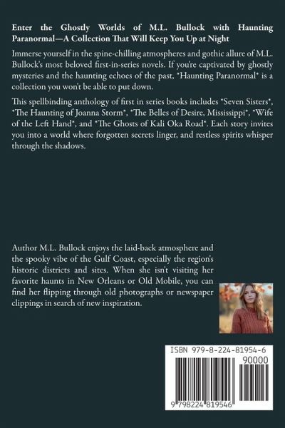 Enter the Ghostly Worlds of M.L. Bullock with *Haunting Paranormal*-A Collection That Will Keep You Up at Night Immerse yourself in the spine-chilling atmospheres and gothic allure of M.L. Bullock's most beloved first-in-series novels. If you're captivated by ghostly mysteries and the haunting echoes of the past, *Haunting Paranormal* is a collection you won't be able to put down. This spellbinding anthology of first in series books includes *Seven Sisters*, *The Haunting of Joanna Storm*, *The Belles of Desire, Mississippi*, *Wife of the Left Hand*, and *The Ghosts of Kali Oka Road*. Each story invites you into a world where forgotten secrets linger, and restless spirits whisper through the shadows. In *Seven Sisters*, journey through the mysterious corridors of a haunted historic mansion in Mobile, Alabama, where a labyrinth of secret passages and hidden truths awaits discovery. Travel back to the Jazz Age in *The Haunting of Joanna Storm*, where an ill-fated Hollywood starlet faces a battle against unholy spirits at Morgan's Rock. Can she escape the sinister curse that threatens to consume her and those she loves? In *The Belles of Desire, Mississippi*, Jerica Poole is drawn into a 75-year-old mystery in a small southern town, where the ghost of Jeopardy Belle may be more than just a tragic memory. As Jerica uncovers the secrets of Summerleigh, she finds that some spirits are unwilling to rest in peace. Finally, step into the realm of paranormal investigation with *The Ghosts of Kali Oka Road*, where the line between the living and the dead blurs, and every turn brings a new supernatural revelation. With hundreds of five-star ratings across these unforgettable tales, *Haunting Paranormal* is a must-read for fans of ghostly, gothic fiction. Will you dare to enter these haunted worlds?