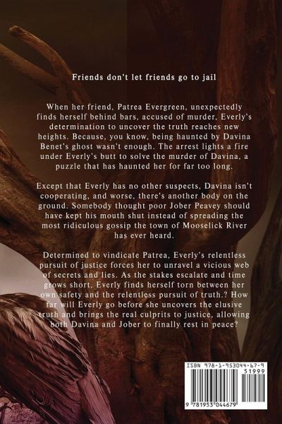 Friends don't let friends go to jail When her friend, Patrea Evergreen, gets arrested for the crime, Everly has a new reason to solve Davina Benet's murder. Because, you know, being haunted by Davina's ghost wasn't enough. Except that Everly has no other suspects, Davina isn't cooperating, and worse, there's another body on the ground. Somebody thought poor Jober Peavey should have kept his mouth shut instead of spreading the most ridiculous gossip the town of Mooselick River has ever heard. What lines will Everly have to cross before she tracks down Jober's killer? If you like gutsy heroines who solve ghostly mysteries, you'll love this cozy, paranormal series.