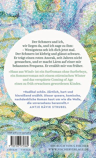 »Haus aus Wind« ist ein Surfroman ohne Surferboys, ein Sommerroman mit einem stürmischen Winter. Das verspätete Coming of Age eines zu früh erwachsen gewordenen Kindes. Und die Geschichte einer queeren ostdeutschen Frau, die nach ihrer eigenen Stimme sucht.
