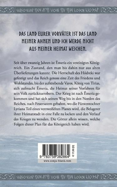Das Land Eurer Vorväter ist das Land meiner Ahnen und ich werde nicht aus meiner Heimat weichen.Seit über zwanzig Jahren ist Ëmeria ein vereinigtes Königreich. Ein Zustand, den man bis dahin nur aus alten Überlieferungen kannte. Die Herrschaft des Hódreki war gefestigt und das Reich genoss eine Zeit des Friedens und Wohlstandes, bis der aufstrebende Varos, König von Tirias, sich aufmacht Ëmeria, die Heimat seiner Vorfahren für sein Volk zurückzuerobern. Der Krieg ist nach Ëmeria gekommen und hat sich seinen Weg bis in den Norden des Reiches, nach Feuersatem gebahnt, wo die Fürstentochter Lyriana Teil eines verzweifelten Planes wird, die Belagerer ihrer Heimatstadt in eine Falle zu locken und den Verlauf des Krieges zu wenden. Die Götter allein wissen, welche Folgen dieser Plan für das Königreich haben wird.