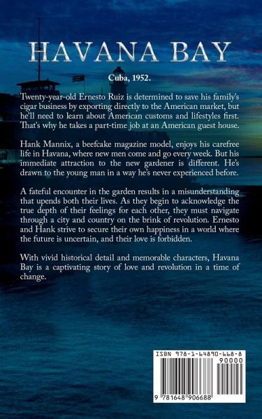 Cuba, 1952. Twenty-year-old Ernesto Ruiz is determined to save his family's cigar business by exporting directly to the American market, but he'll need to learn about American customs and lifestyles first. That's why he takes a part-time job at an American guest house. Hank Mannix, a beefcake magazine model, enjoys his carefree life in Havana, where new men come and go every week. But his immediate attraction to the new gardener is different. He's drawn to the young man in a way he's never experienced before. A fateful encounter in the garden results in a misunderstanding that upends both their lives. As they begin to acknowledge the true depth of their feelings for each other, they must navigate through a city and country on the brink of revolution. Ernesto and Hank strive to secure their own happiness in a world where the future is uncertain, and their love is forbidden. With vivid historical detail and memorable characters, Havana Bay is a captivating story of love and revolution in a time of change.