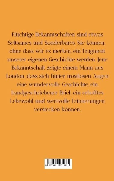 Flüchtige Bekanntschaften sind etwas Seltsames und Sonderbares. Sie können, ohne dass wir es merken, ein Fragment unserer eigenen Geschichte werden. Jene Bekanntschaft zeigte einem Mann aus London, dass sich hinter trostlosen Augen eine wundervolle Geschichte, ein handgeschriebener Brief, ein erhofftes Lebewohl und wertvolle Erinnerungen verstecken können.