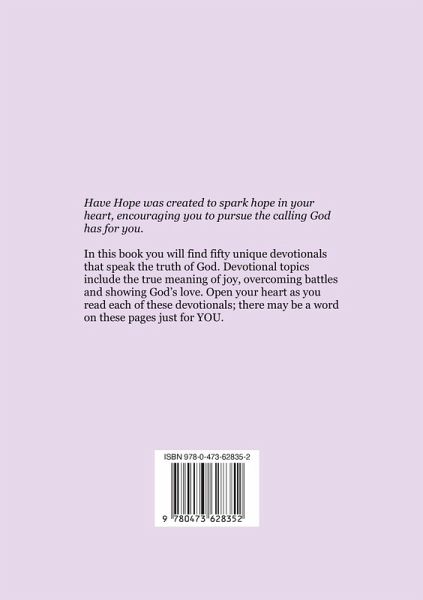 Have Hope was created to spark hope in your heart, encouraging you to pursue the calling God has for you. In this book you will find fifty unique devotionals that speak the truth of God. Devotional topics include the true meaning of joy, overcoming battles and showing God's love. Open your heart as you read each of these devotionals; there may be a word on these pages just for YOU.