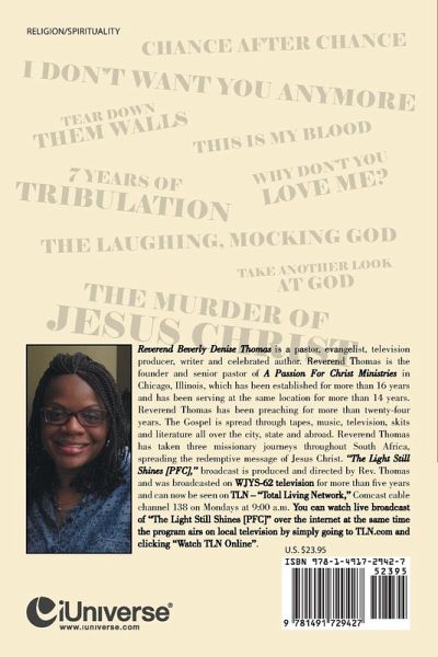 Why don't you love me? 7 years of tribulation The murder of Jesus Christ Take another look at God Tear down them walls I don?t want you anymore The laughing, mocking God Chance after Chance