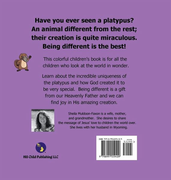This colorful children's book is for all the children who look at the world in wonder. They will learn about the incredible uniqueness of the platypus and how God created it to be very special. Being different is a gift from our Heavenly Father and we can find joy in His amazing creations.