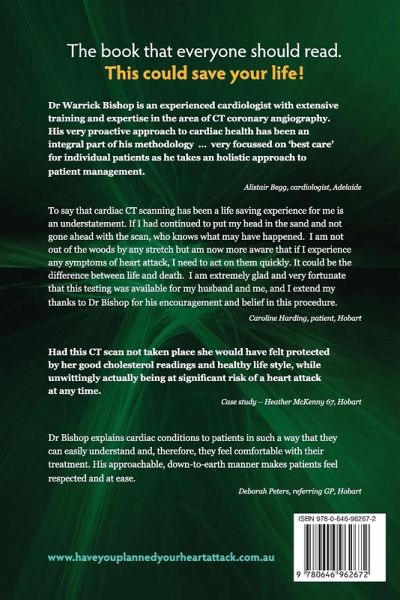 Have You Planned Your Heart Attack? is not the next optimistic, self-help, heart disease reversal, low carb, cure-all approach to health. Believing that prevention is better than cure, it presents a proactive approach to cardiac disease prevention. It is the first-of-its-kind, offering a balanced and referenced discussion of coronary risk assessment using modern technology. Taking a picture of the coronary arteries using CT to see the health of the arteries is not new; it just isn't being done routinely. Yet, by using these advances you can be ahead of the game about your own cardiovascular health. Wouldn’t you want to know, rather than guess, if the single biggest killer in the Western world was lurking inside of you? We all know friends and family members who have suffered a heart attack, who live with angina or endure shortness of breath. A disease has developed. This book explores how we might be able to prevent the disease, especially a heart attack, from occurring in the first place. Treatment for risk, prior to an event, is primary prevention – the focus of Have You Planned Your Heart Attack?. Until recent times, primary prevention largely involved treatment of the unknown. Historically, risk assessment has been based on a number of factors observed in a population (or number of people). This observational data includes increasing age, being male, increased blood pressure and smoking. Now, today’s technology also allows us to look at the health of an individual’s coronary arteries in exquisite detail. The use of CT imaging, before the onset of a problem, is a paradigm shift in the conventional management of heart disease. Although formalised guidelines or recommendations do not exist for some of the issues covered in the book, a logical and systematic approach based on the science that is available today allows us to looking more broadly at our understanding, and application, of preventative cardiology. Image information, combined with the information gained from the historically-used traditional risk factors, allow specialists, general practitioners and patients to be ahead of the development of coronary artery disease so that measures to reduce risk can be implemented. Although cardiac CT imaging has been readily available for the past five to 10 years, it has not been broadly taken up. The hope from this book is to begin a conversation which ultimately increases utilisation of cardiac CT imaging, in combination with other risk factor evaluation, to improve primary prevention for coronary artery disease. Its vision is that imaging will be incorporated into a more holistic approach, thus improving the way we deal with the potential risk many individuals carry in regard to coronary artery disease. As this technology becomes more familiar to the community, then its use could be at the coalface for general practitioners who are, by virtue of their position in providing medical care, the custodians of preventative medicine. As we are comfortable with mammography, pap smears, measuring cholesterol levels and blood sugar levels, could we see cardiac CT imaging as one of the tools available for widespread implementation in public policy? For change to occur, we need conversation followed by action. The information offered throughout this book is accompanied by an invitation to be part of that conversation. Criticism and controversy are healthy parts of vigorous conversation, as too, are vision, passion and an enthusiasm for possibility. If this book starts such conversation that opens doors to further evaluation, and discussion – and along the way improves medicine and saves lives – then that is a good start.