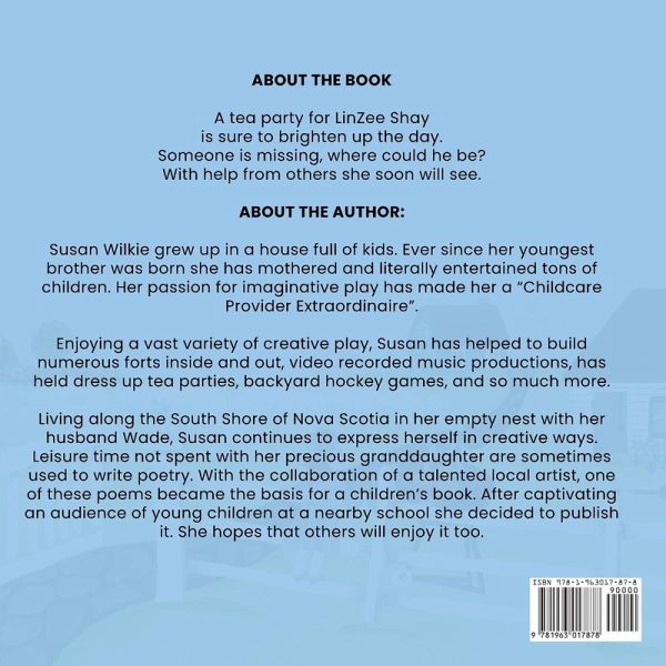 Tea parties can sure be fun! What if you can't find someone? LinZee's friend was acting weird and now he has disappeared! This has saddened LinZee Shay. Will it ruin her happy day? She will search, he must be found! Surely he is safe and sound! LinZee is all dressed up and ready for her tea party. But she can't find her beloved friend. However, she is determined he must be found before the party begins. Where could he have gone? She seeks the help of family and friends. Children will enjoy listening to this story in rhyme. They are sure to delight in the humorous ending when LinZee Shay finds her beloved mystery friend. The book has beautifully painted illustrations that are uniquely designed to catch a child's eye.