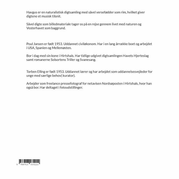 Havgus er en naturalistisk digtsamling med såvel versefødder som rim, hvilket giver digtene et musisk tilsnit. Såvel digte som billedmateriale tager os på en rejse gennem livet med naturen og Vesterhavet som baggrund.