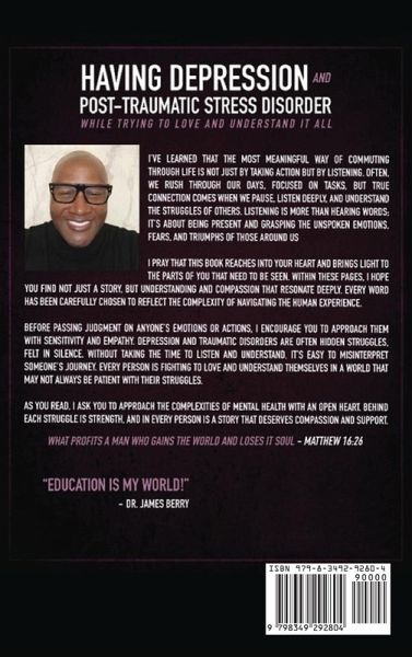 "Having Depression & Post Traumatic Stress Disorder" by Dr. James L. Berry is an introspective exploration of the author's personal battle with depression and PTSD. Through heartfelt anecdotes and reflections, Dr. Berry shares his traumatic experiences and the subsequent isolation that fueled his struggles. The narrative addresses how societal expectations and cultural norms can lead to feelings of alienation, especially for marginalized communities. By intertwining his professional journey in education with his mental health challenges, Dr. Berry aims to illuminate the complexities of these mental health issues and advocate for understanding and compassion. He seeks to help others navigate their own paths toward healing while fostering a conversation about mental health that is often stigmatized.
